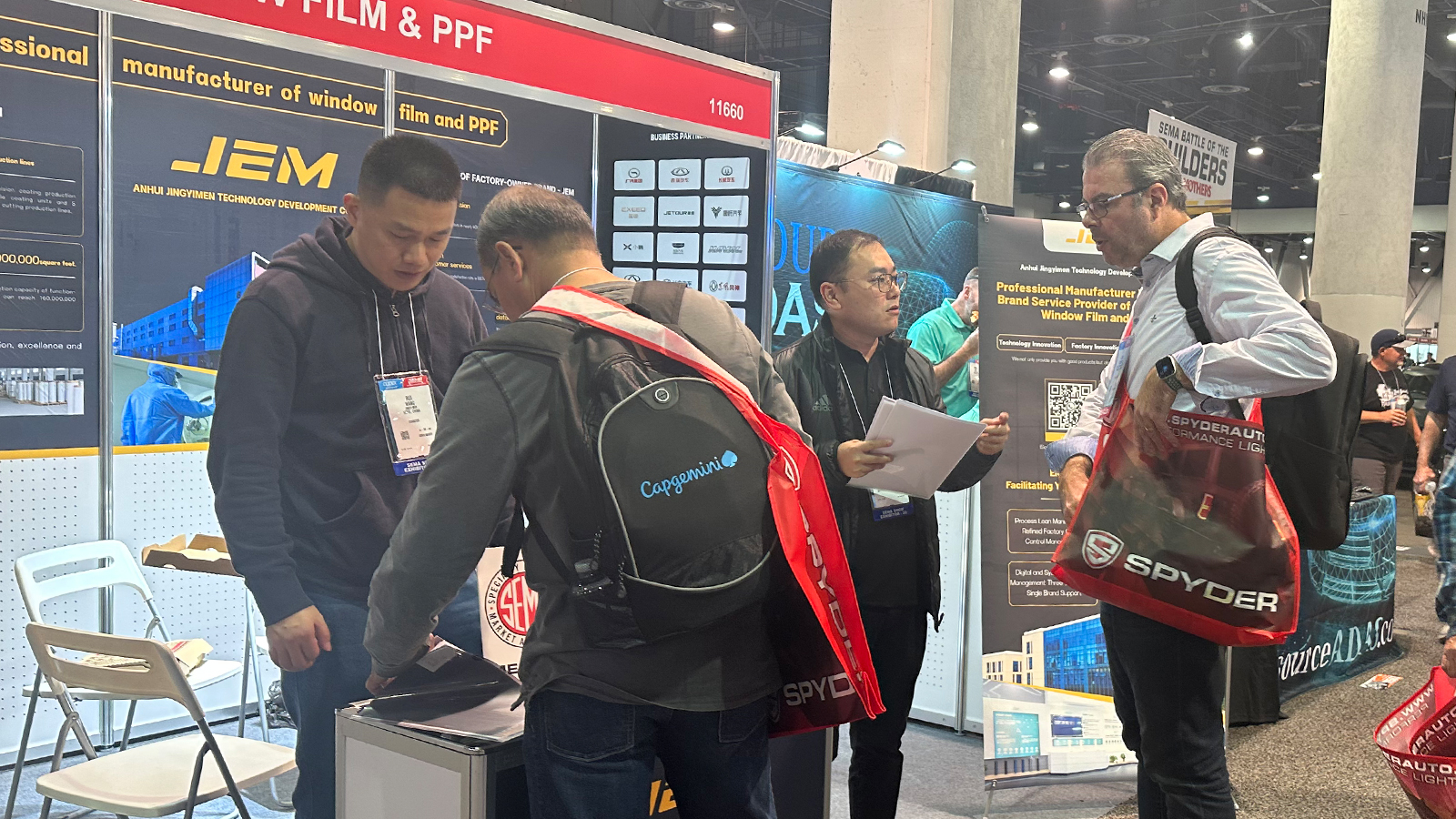 中国汽车膜连锁领导者精一门科技携JEM Film品牌系列产品首次隆重亮相2023美国SEMA SHOW,为全球汽车及后市场专业人士系统性展示了中国品牌的魅力、中国技术的实力和中国产品的能力。JEM Film卓越的产品品质和体系化的产品结构,以及精一门工厂出色的产品OEM/ODM能力,吸引众多海外采购商前来咨询、采购。